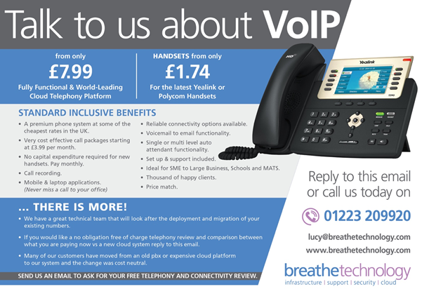 Alternatively you can contact us on 01223 209920 or email lucy@breathetechnology.com. It’s highly likely that you will save money and end up with a better system and better connectivity …