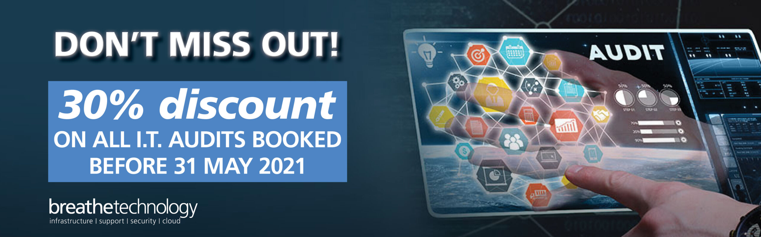We are currently offering a 30% discount on all audits quoted on before 31 May. To discuss your IT and our Audit Offer, please email Lucy@breathetechnology.com or call us on 01223 209920